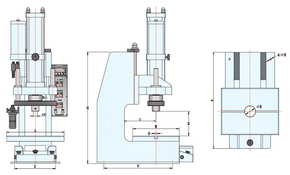 6.電控系統(tǒng)可以設定工作周期和保壓時間,設定并記錄工作次數(shù)。
